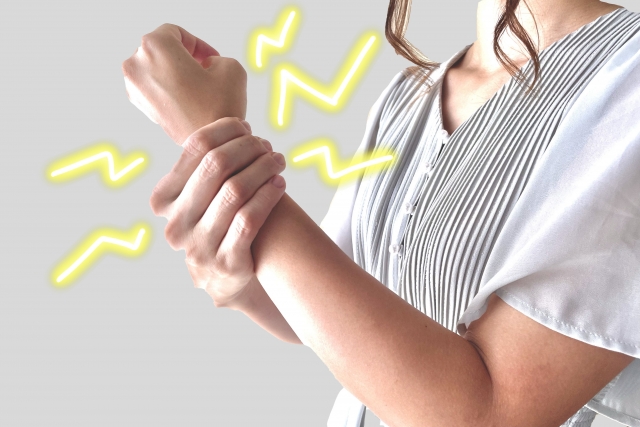 《腕や肘、手にかけてのしびれや痛み、脱力》