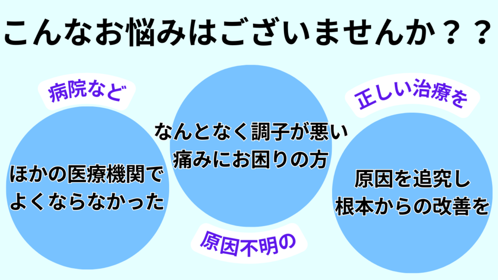 なんとなく身体がだるい、痛いなどのご相談なども承ります。