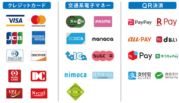 クレジットカード、各種電子マネー決済がご利用頂けます。